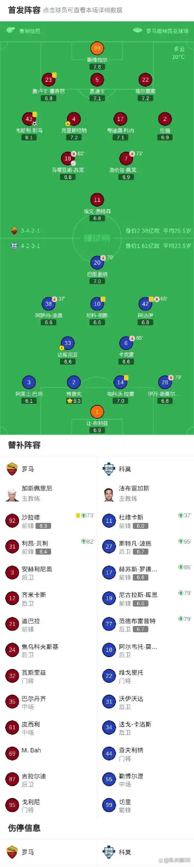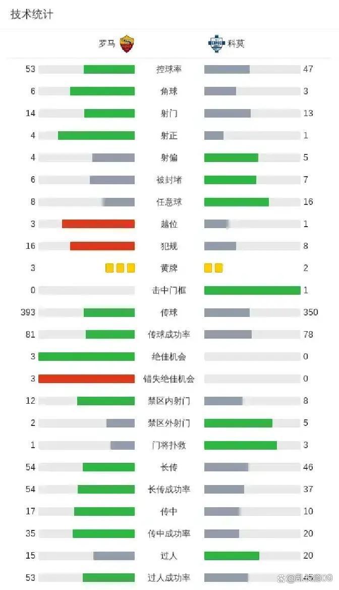 比赛中科莫的驻守很有层次,至极是对罗马的边路传中死心不少。罗马全体防地踏实,中场东说念主数多,后半段屡次阻隔了科莫的反击,保握了升迁。科莫虽有进军,但没破门,要挟有限。